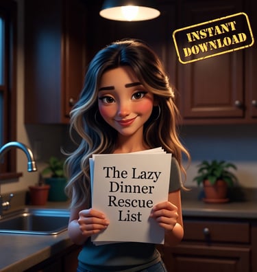 The Lazy Dinner Rescue List gives you 15 no-thinking dinner ideas you can make using pantry and freezer staples — perfect for tired nights, busy days, and “I just can’t” moments.