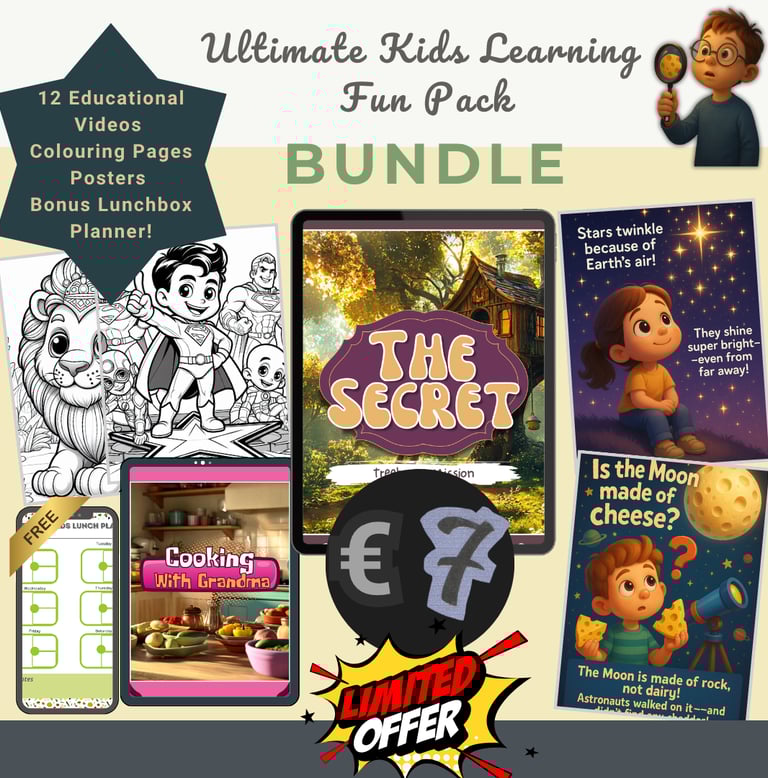 Ultimate Kids Learning Fun Pack – 12 Educational Videos, Colouring Pages, Posters & Bonus Lunchbox Planner!